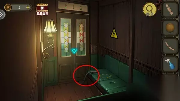 11、用绝缘手套修好电路,在地上拿碘酒、开关和半个钳子。
