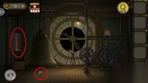 79、在钟下拿方块,方块放机关上。