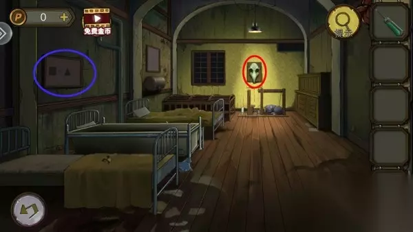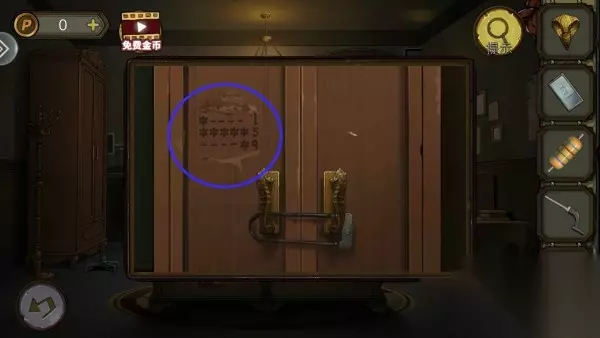 7、将3张铜卡对应放画上,拿钥匙开门。