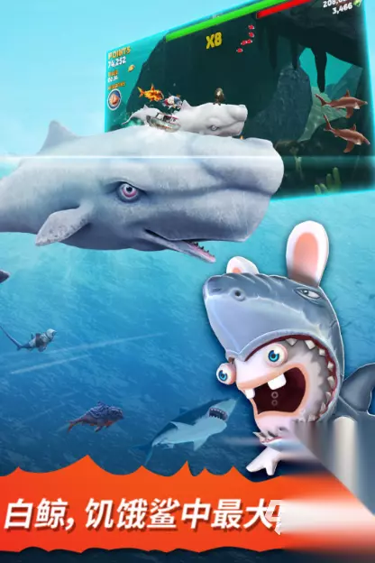 这款使用传统国风文化设计的卡牌作品,塑造了逼真的修炼场景和熟悉的神话阵容,玩家们可以率领悟空哪吒,共同在天空中完成战斗修炼。游戏以神话人物的技能搭配作为战斗目标,可以使用各种神奇法宝和天书进行养成战斗,有趣的挂机实现了自动战斗。关卡中提供了秘境探索和大闹天宫地图,足以获得升级的资源。 扫码下载该游戏 高速下载 普通下载 优先233乐园APP下载 4、《饥饿鲨:进化》