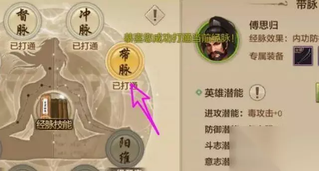 5、设置好英雄后,相应的经脉即可打通。