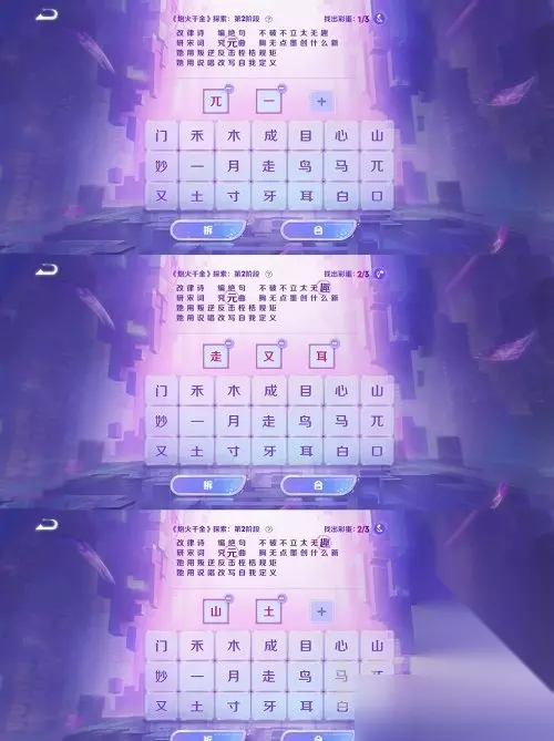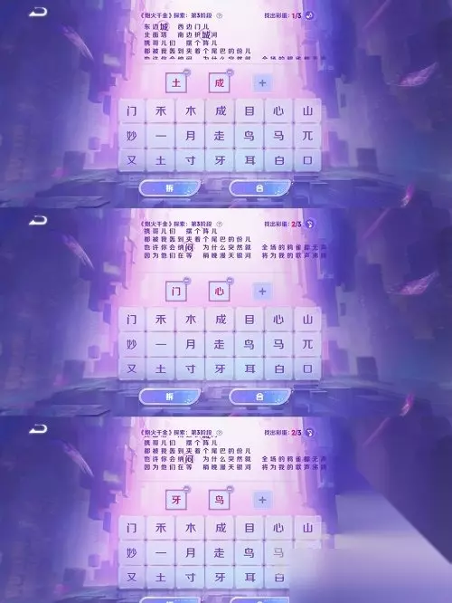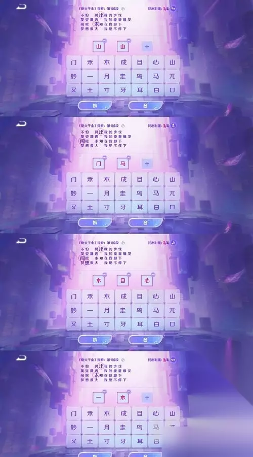 王者荣耀炮火千金如何进行?王者荣耀炮火千金这个游戏活动许多的玩家们不知道该如何去进行后续的操作,在今天这篇攻略里面,小编就给大家带来了王者荣耀炮火千金全关卡探索攻略的全部详细内容,大家可以按照小编给大家整理的去进行操作,能够更加的简单。 王者荣耀炮火千金探索全关卡攻略 1、第一阶段(都点合):山+山、门+马、木+目+心、一+木。