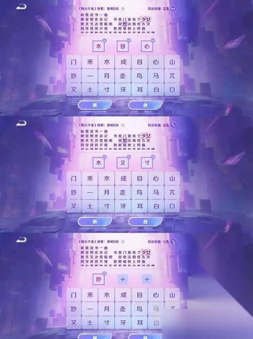 4、第四阶段:木+目+心、木+又+寸、妙(拆)。