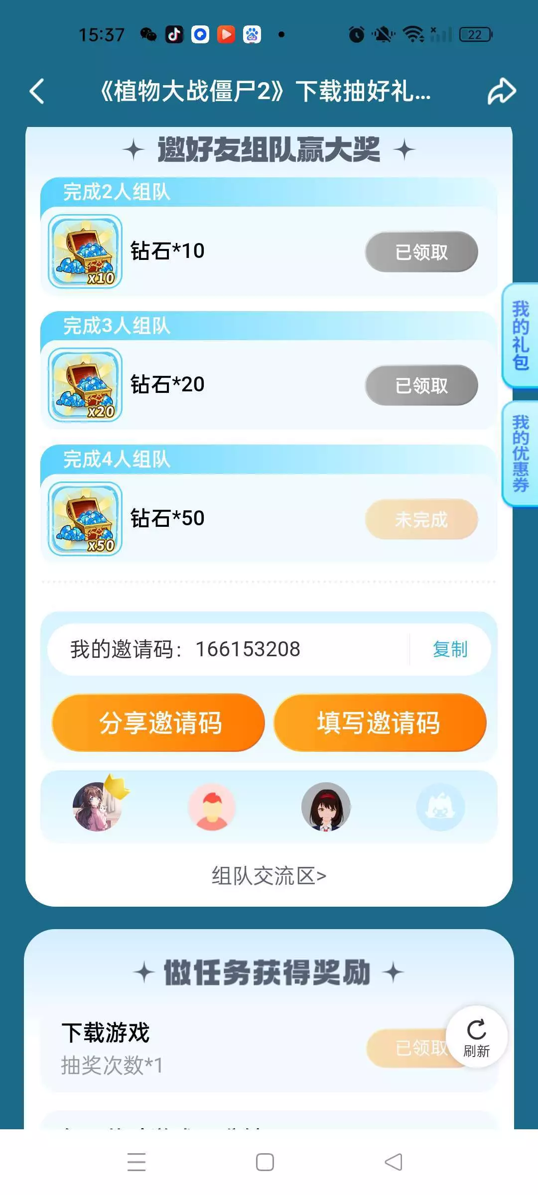 填写邀请码