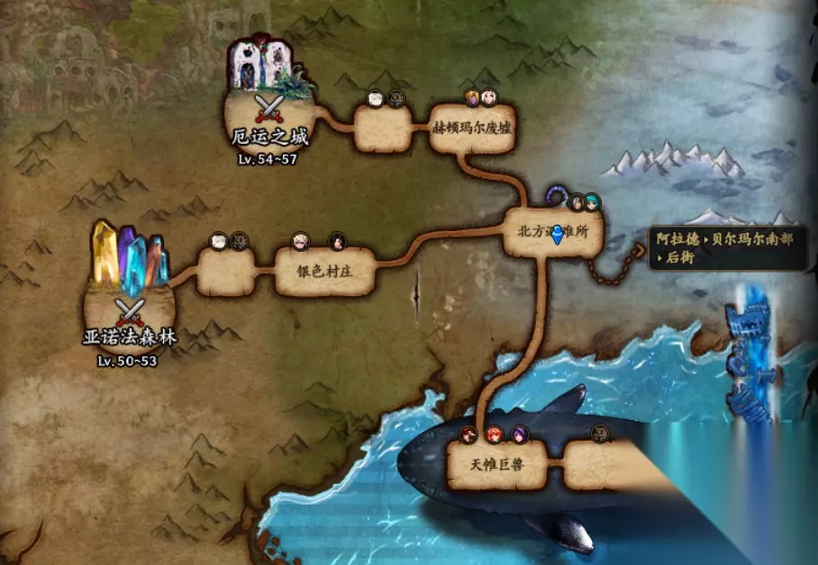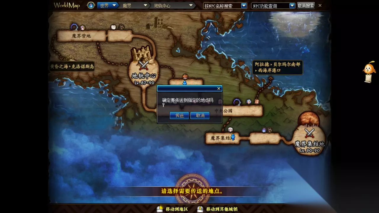14、86级以上未完成主线任务的小伙伴们可能会找不到魔界,除了用瞬移药和公会瞬移还可以从港口选择克洛诺斯岛,然后从原传送达娜左侧传送门就可以回到魔界了。