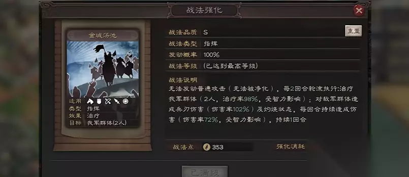 减伤体系是司马盾能否发挥效果的关键。藤甲兵能有效克制兵刃队伍,注意规避火攻阵容;抚辑军民提供前三回合40%的高额减伤,但会降低自身输出;暂避其锋可针对性保护司马懿免受兵刃伤害。若选择形一阵替代传统锋矢阵,能通过牺牲前期输出换取后期更高的伤害加成,同时阵法类战法不受伪报影响,可缓解当锋摧决的威胁。治疗战法优先选择刮骨疗毒,其解除负面状态的效果能应对灼烧等克制手段,而郝昭的自带指挥型治疗可与其他主动战法形成互补。