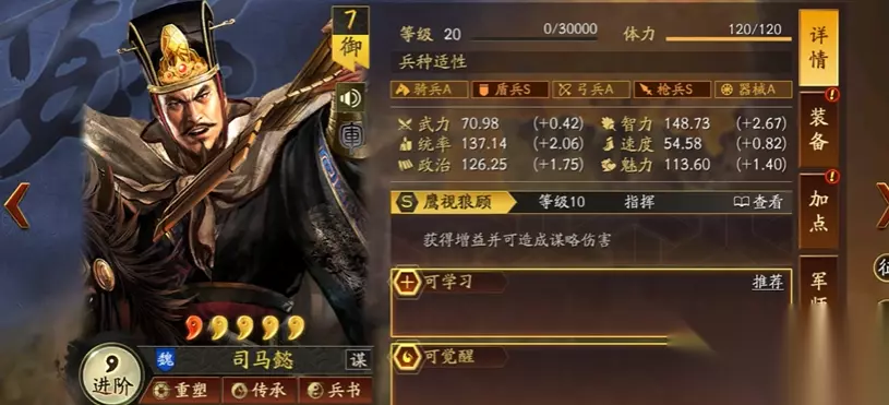 司马懿推荐虚实系兵书,点出攻其不备与将威提升奇谋概率;曹操选择军形系的严阵以待和守势,强化团队防御;郝昭则适合九变系的援其必攻与励军,增强治疗收益。属性加点方面,司马懿全智力最大化输出,曹操主统率副智力平衡抗性,郝昭可依据战法需求分配智力或统率。注意司马盾对红度有一定要求,低红玩家可考虑用四面楚歌替代用武通神,但会降低输出稳定性。