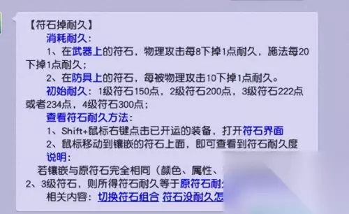 1级符石按照均价12W算,耐久150点,每点耐久价值800两。2级符石按照均价50W,耐久200点,每点耐久价值2500。3级符石按照110W计算,耐久222,每点耐久价值5000。这样一个三级符石组合每被攻击10次耐久,损耗为800+800+2500+5000=9100,攻击1次就是910,身上两个四孔就是1820两银子。