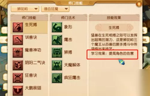 同样物理可以打增加物理伤害的师门技能符石,比如狮驼铠甲上的生死搏。