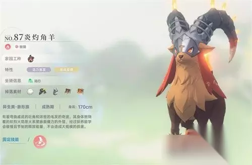 2、炎灼角羊 炎灼角羊的天赋为烧制天性,家园工种和砖窑有关,把它派驻到砖窑时,在完成烧纸以后,有2%的概率将原材料给返还回来,可以说炎灼角羊的基础区间还是比较高的,简直就是天生的打工人,产量海非常的充足,是大家拓荒的不二选择。
