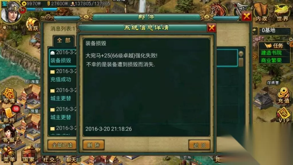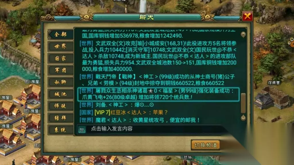 3.小白:关于踢城,很多人提起这个都很激动,不知道亲第一次单都的时候是怎么想的?应该有很多人吧? 诸葛:第一次单都是为了耍帅,一个人就去了,伤的严重啊,后来发现,还是团队一起配合伤亡小点啊, 4.小白:人人都渴望求大神罩,所谓的大神在众人眼中,1将单城才能体现深度,不知道亲第一次1将推城所用的将领,和单城的场面还记得吗?可以说说具体的情况吗? 诸葛:记得,第一次单城是用的关羽,因为之前91区就一将单小城过,所以,这次单城直接选择了县城,还好,献帝没有阴我,伤兵我记得刚好208个!觉得还过得去吧,