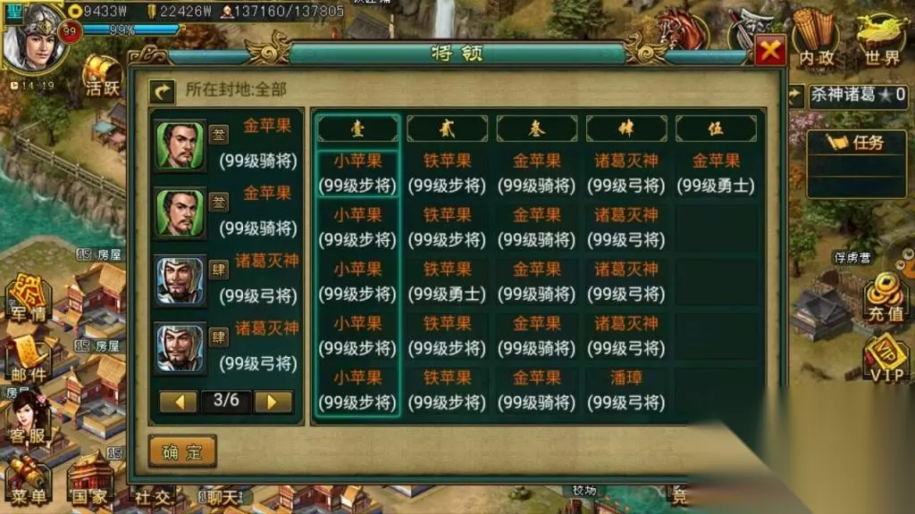 5.小白:关于护国州,也是很让人激动的,团队搭配着实很重要,不知道亲推汉国都的时候,所用的将领搭配是什么呢?为什么如此搭配。 诸葛:我最早推汉护国的时候是才开区一个多月吧,整个汉国大号驻防和我打,最后打下来了,我伤亡挺大的,用的步骁弩阵容,带了冲车的,第二次推的时候是合区了,推汉护国发了5将就忙的忘记发兵了,反应过来时已经推下了,5个将全是骁骑