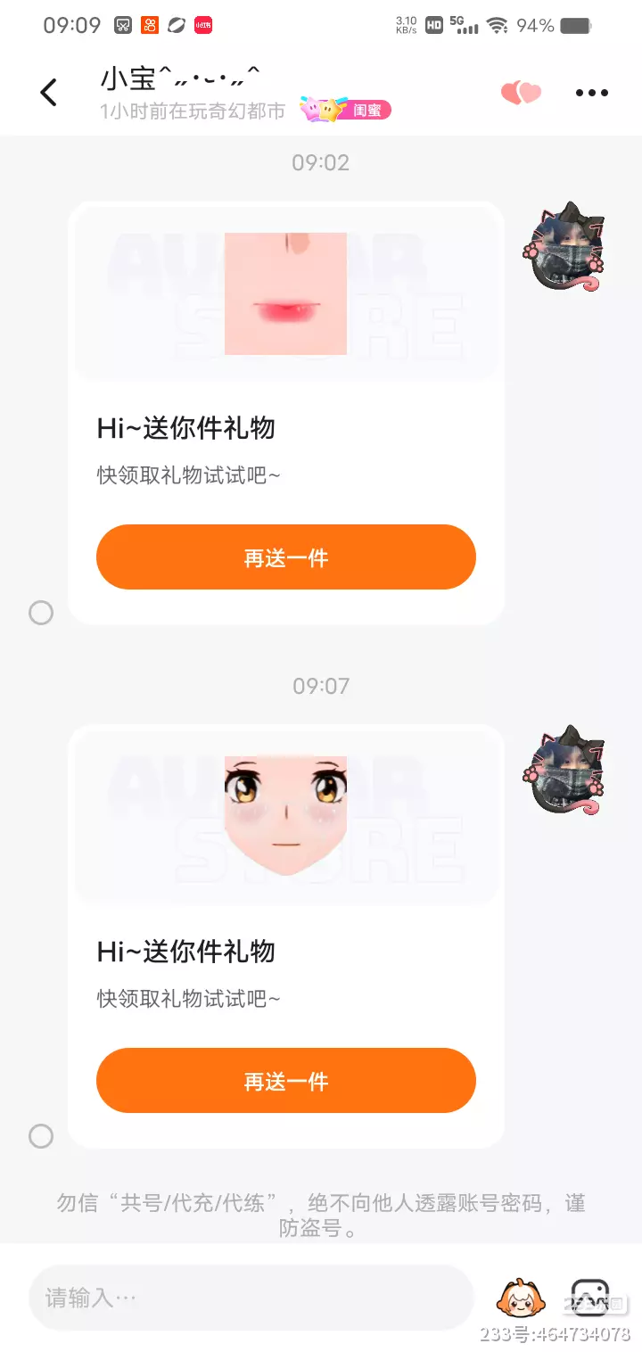 今天共送了4个人,在私信里送了三个人。在游戏里送了一个人