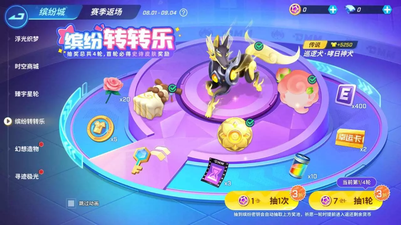 缤纷转转乐,巡逻犬,哮日神犬等一系列精品皮肤等你获取。