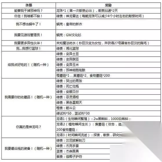注:许愿“能替我干掉邪神吗?”第一次必出龙珠,优先推荐大家选择这个! 二、非限定类