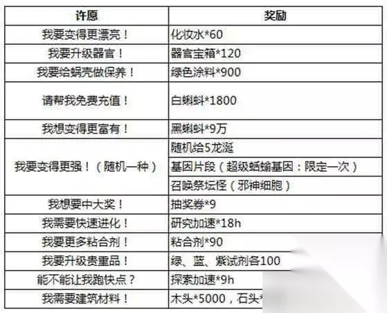 四、龙珠许愿奖励表