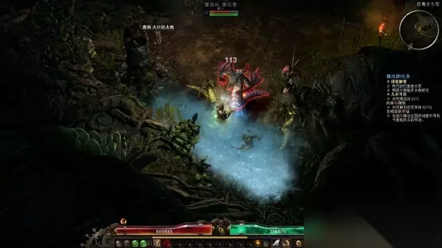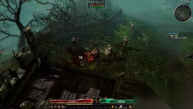 step6.进入到在下游渡口北部的沼泽会遇到魔犬,它们移动速度比起行尸要稍快,然而攻击力会较低,它们属于群体性怪物,如果是远程职业,注意不要被它们给包围了。 通过下游渡口中部往北的木桥后,会遇到监视者,它们是球体形状的远程攻击怪物,会喷出光球。监视者以及它所释放的光球飞行速度都很慢,能够轻易躲开。