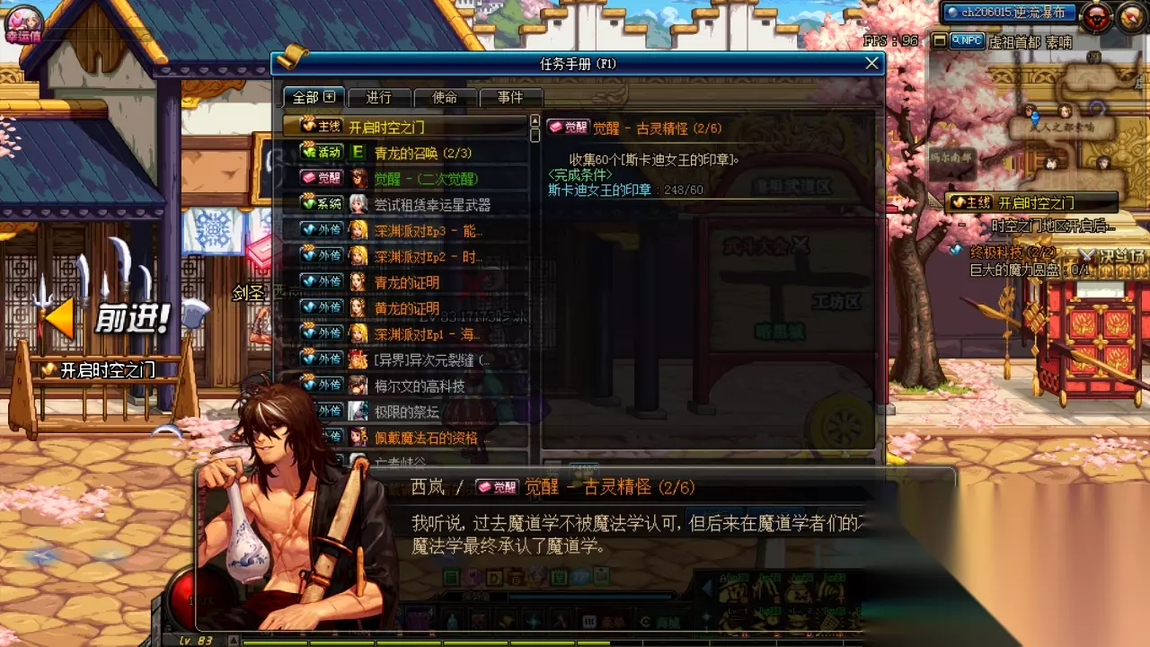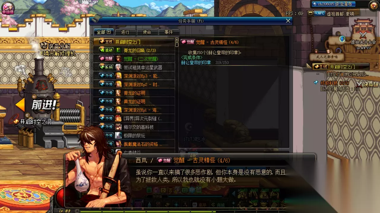 二次觉醒虽然是达到75级即可进行的,但是二次觉醒的npc为西岚,西岚位于素喃地图,所以其实主线没有开启素喃之前你是无法接取任务的还是无法二觉,二觉接取任务后需要交两种材料和刷3次图,两种材料分别为60个斯卡迪女王的印章和150个赫仑皇帝的印章,3次图分别为真·黄龙大会,真·青龙大会,污染的时空之门,最后通关污染的时空之门即可完成觉醒任务~