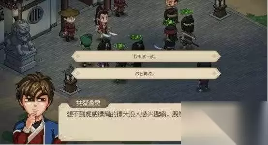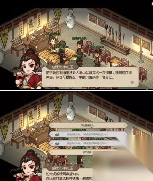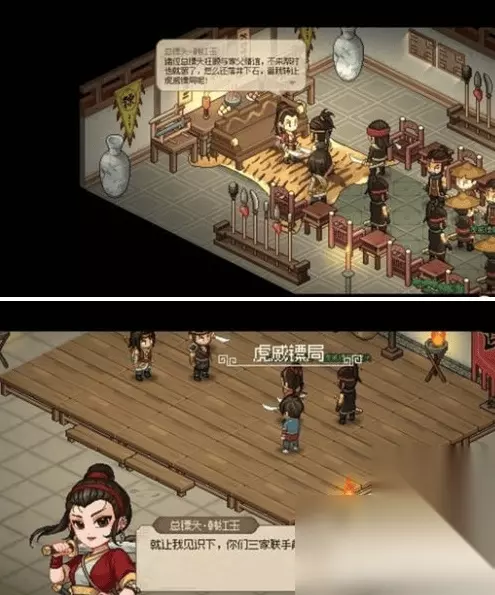 3、镖局声望达到1500后返回镖局触发剧情,与韩红玉一同对阵前来叫板的三大镖头。