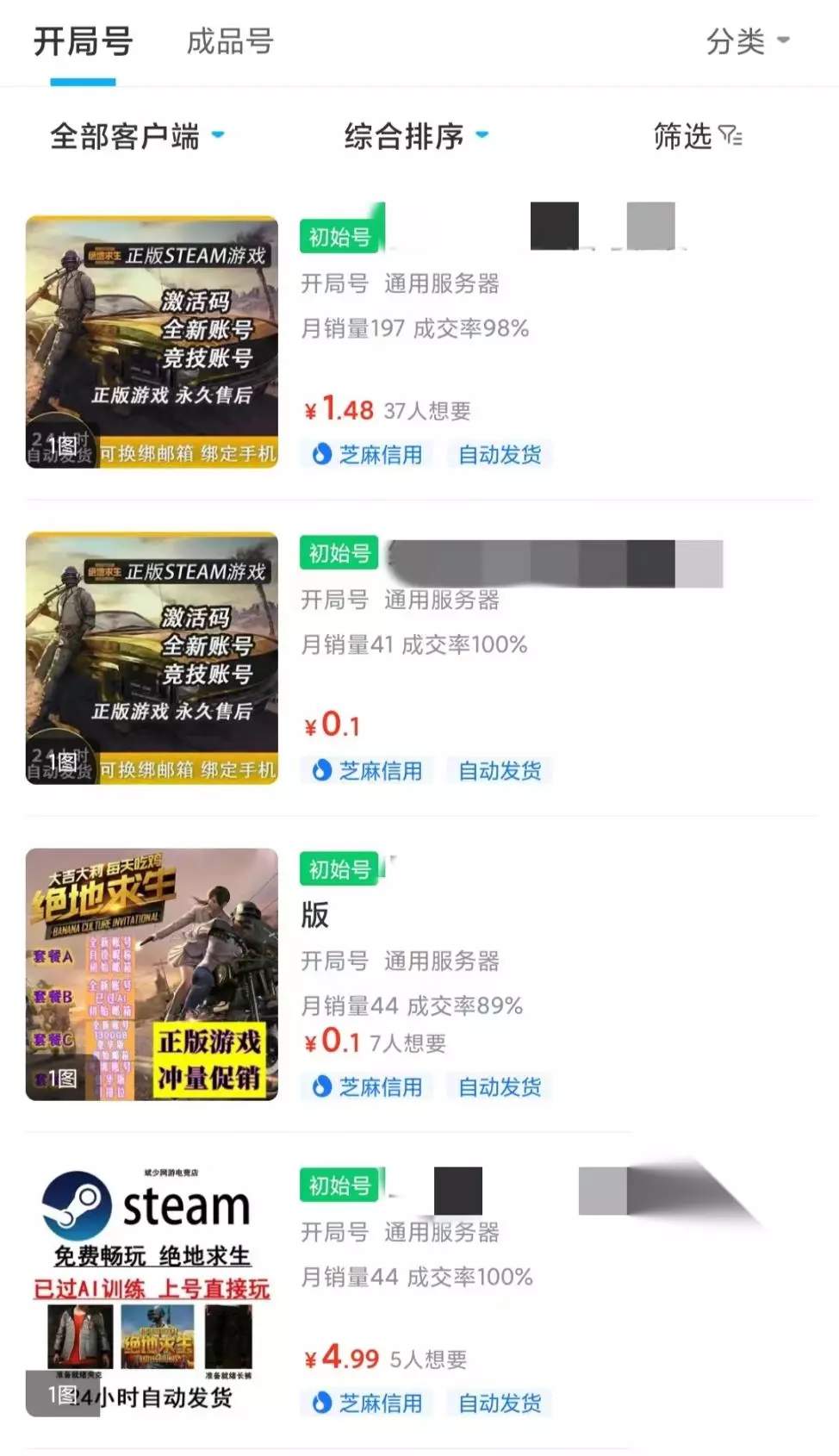 交易猫上有很多便宜的开局号在售卖,市面上要几十元的账号在交易猫几块钱甚至几毛钱就能买到,而且交易猫上还有豪华版的初始号可以买到,玩家拥有一个豪华版的初始号就相当于拥有了工坊和竞技玩法,因为免费版号是不开放这些模式的。而且售卖这些账号的卖家一般都是实人认证和缴纳保证金的。