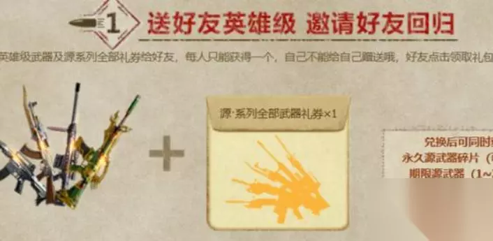 3、召唤回一名老玩家可以获得一张友情券,友情券可以兑换钻石、武器奖励。