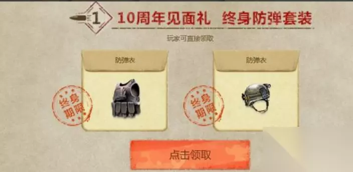 4、被邀请玩家每月必需要进入游戏完成一把游戏体验,就可以获得10周年的见面礼:永久的防弹衣 、防弹头盔。