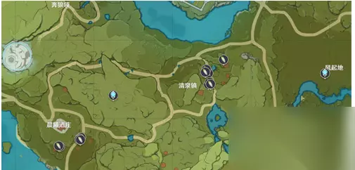 2、如果还缺的话,可以去望舒客栈河西岸的小房屋中获取。 3、它们有的是在调查点里面,有的是长在土地里。 其他位置的太分散了,就不推荐去采集了。 白萝卜采集路线图 1、清泉镇附近,高一点的地上;