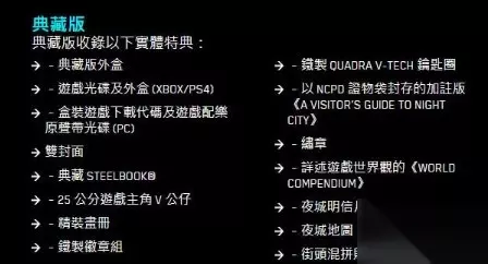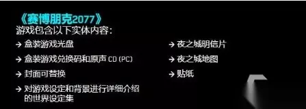 购买典藏实体版赛博朋克2077的玩家,将获得以下附加内容: