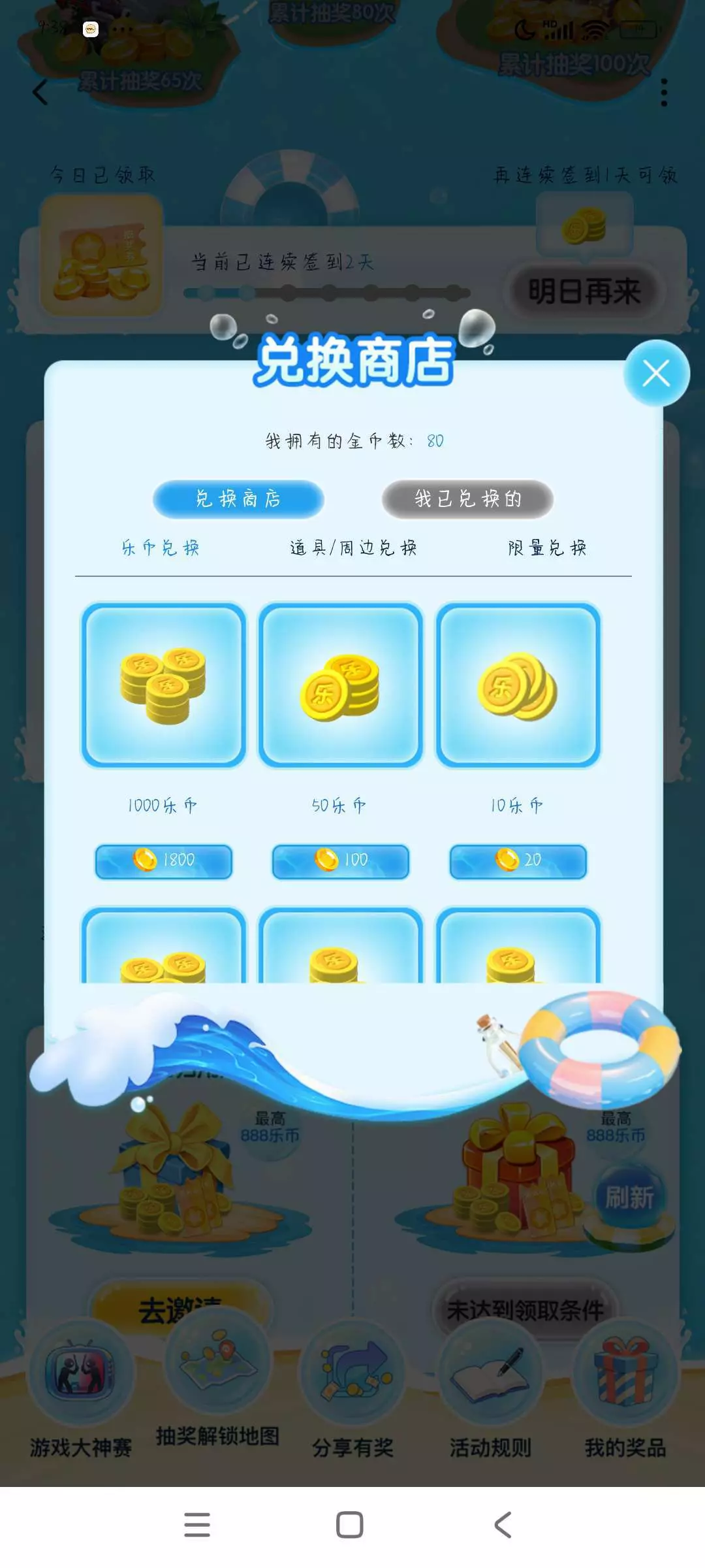 2天抽到了80币
