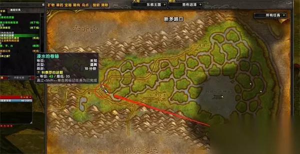 3. 接下来,需要前往悲伤沼泽解谜。在坐标23,49的小桥下面,可以找到净水的卷轴。点击卷轴以完成任务。