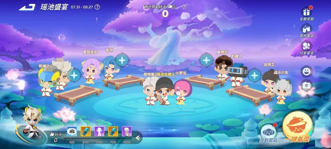●呼朋唤友,瑶池相会~少年将接到王母娘娘的委托,在瑶池举办盛大的宴会,摆放菜品上桌,邀请朋友来炫饭,累计好评进度可获得以下奖励: