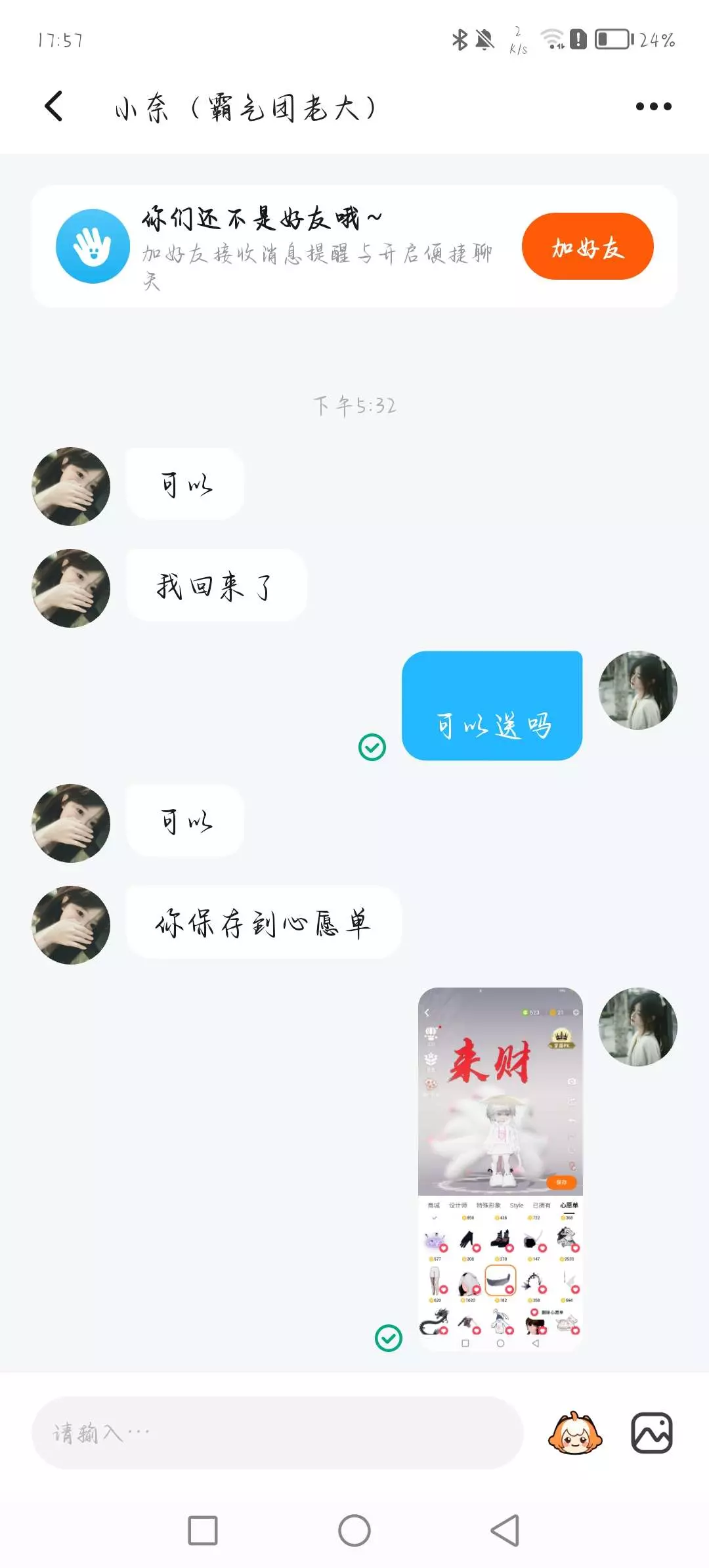 我都已经送他了,你们知道后面是怎样?他说的送我然后把我送了一个[礼貌卡片]然后她就把我拉黑了。求送