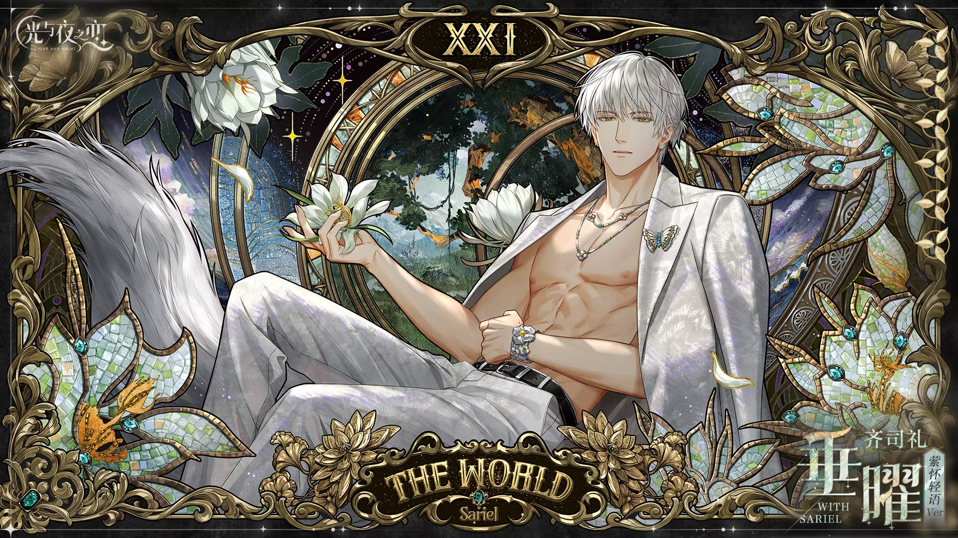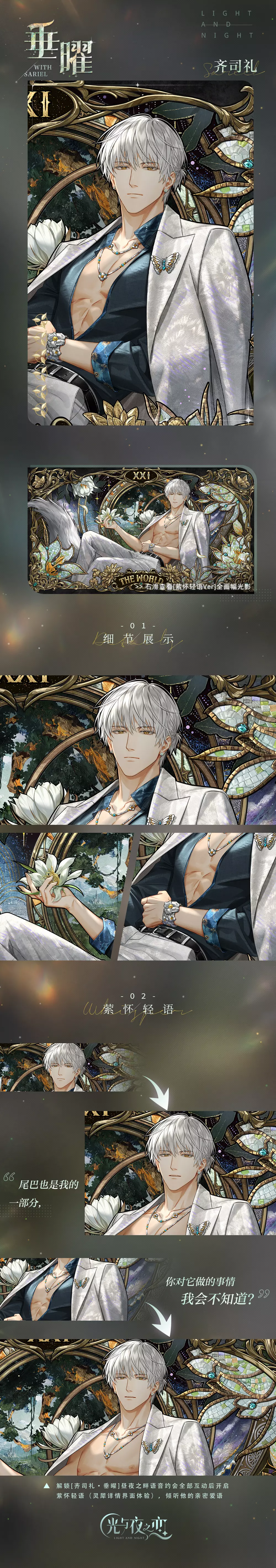 [6星]灵犀 齐司礼・垂曜 属于眷影・逆位悸动系列,为单面横版限定灵犀,完整全画幅光影可在专属系统[萦怀轻语]中鉴赏。