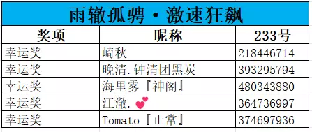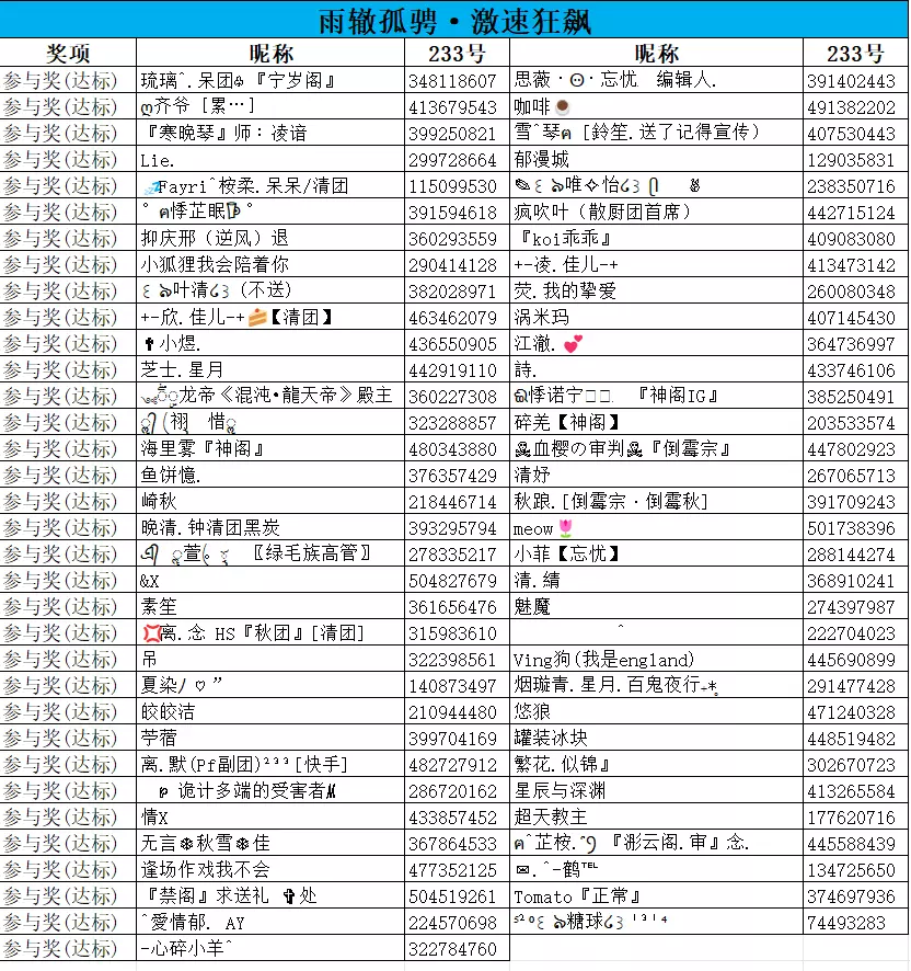 4、部分玩家有出现变更昵称等情况,获奖情况以消息推送、233号为准。