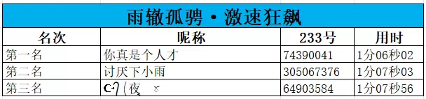 本期竞速比赛获奖名单如下: