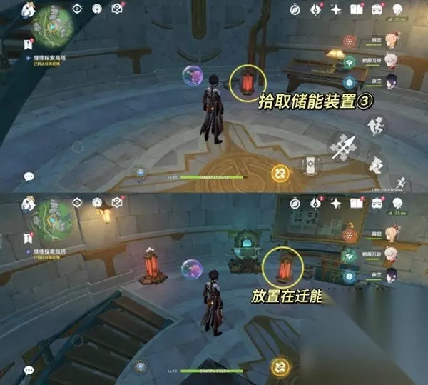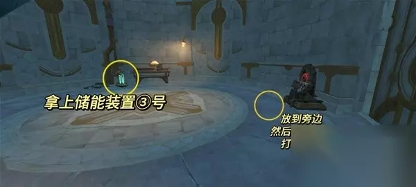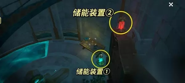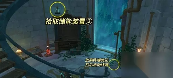4.继续探索高塔 拾取起面前的储能装置③号,带着它往上走一层,把它放置在迁能终端旁边。