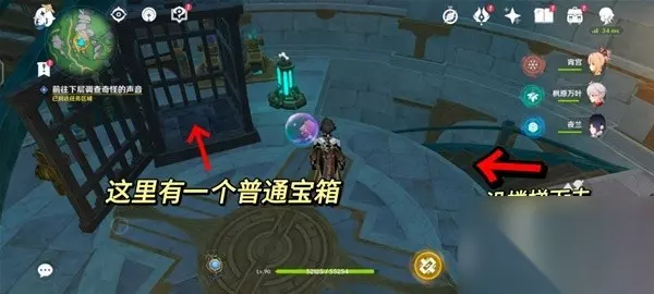 继续沿着楼梯往下,旁边的牢笼打开可以获得一个普通宝箱。