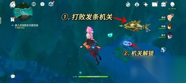 2.进入沉没的水文研究站 这里我们先吸收附近异色水母的能力,击败面前的发条机关,解锁晶体机关。
