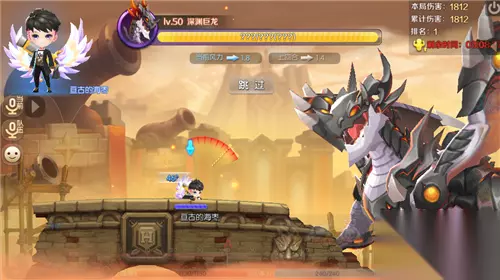 【战斗】 值得注意的是,世界boss与其他普通的怪物不同,他是一个服务器共享血量的,也就是说,同一个服务器的玩家对他造成的伤害是累加起来的。大家只要齐心协力,积少成多,再多血量的世界BOSS也会被大家击败的。 玩家即使被击败了也不要担心,只需要花费少量绑钻即可满血复活,继续留在战场抵御世界BOSS的入侵。 别看这个小小的台子,世界BOSS可是会放足足5种技能呢,其中有些技能还可以完全利用技巧躲过去,具体的方法还需要自己动脑筋研究哦。