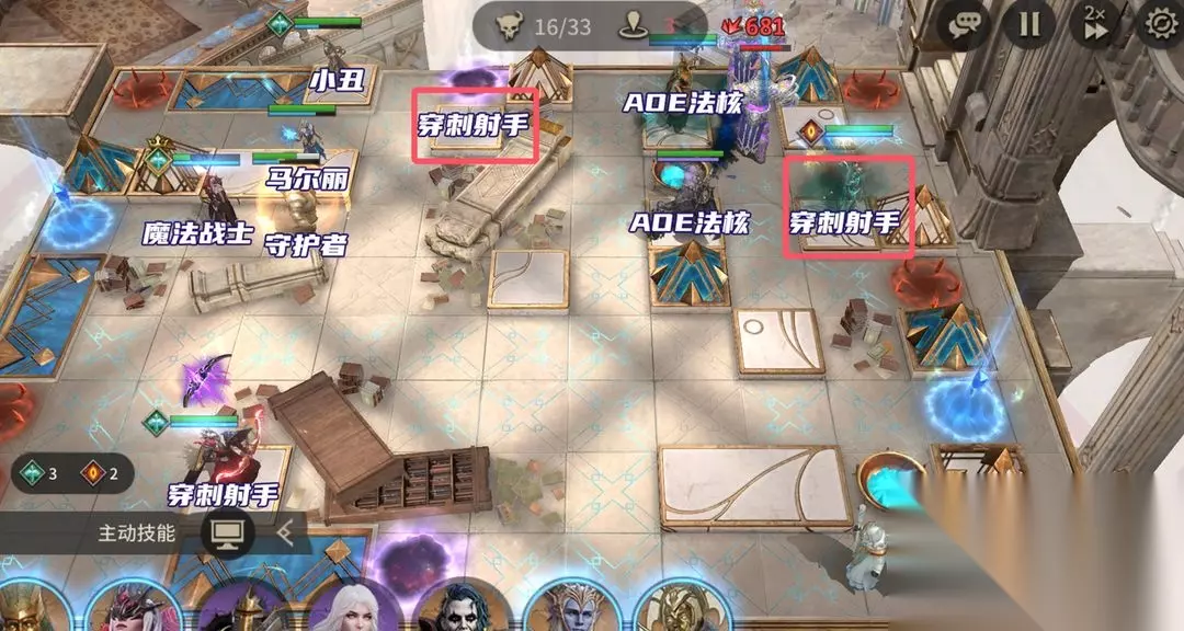 N9-18会大量的爆毁灭者,并且进行多频进攻。以往的战役神将“小丑”由于单体输出,会渐渐的失去统治力,我们要养成多个AOE魔法输出来解决这种多个目标的场面。这个关卡中的马尔丽用于给目标施加易伤减速,可交由贪婪作为主C。如果贪婪的数值稍低,可以在后面在补一波AOE伤害(我这边用喀美特、新娘,其他魔法AOE英雄也可以)。 打法技巧: 马尔丽/贪婪+AOE魔法英雄(喀美特、新娘、阿贾克斯、妲丽亚)后续许多关卡都可用到相同的技巧,有减速的情况下可争取更多的时间,此外易伤可降低数值门槛。 二、N9-19 右上角会刷修复师,主要用穿刺伤害大,可以用哈苏、弋德莉尔的穿刺射手。马尔丽放置在战场中心位置,提供批量减速、易伤,其他高台位放置AOE输出核心即可(所有的魔法输出英雄都可以拿出来用)。