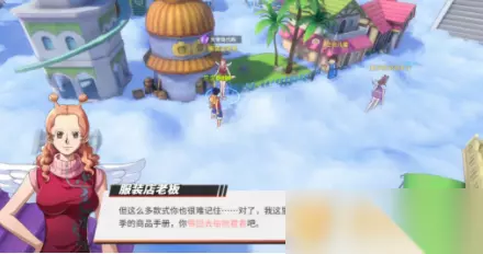 2、通过对话得知需要在天使岛的大街找到服装店的老板,与其对话,需要帮其找到一个季节的商品手册并带回交付;