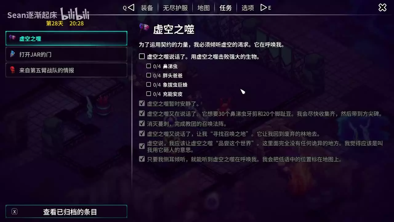 三.进入深渊 完成结局三后,返回标题界面。当你再次读取这个存档时,会发现存档图标被虚空般的藤蔓缠绕,连续按交互键破除藤蔓后,读取存档即可正式进入第三幕——深渊。 进入深渊后,你将面临新的挑战并有机会解锁包括“虚空姊妹”在内的更多结局,这通常需要你在深渊中探索并收集如“三王之心”等关键物品。 希望这份攻略能帮助你顺利开启深渊的冒险!如果你在某个具体环节卡住了,比如寻找某个任务的起始NPC,可以告诉我,我可以提供更详细的指引。