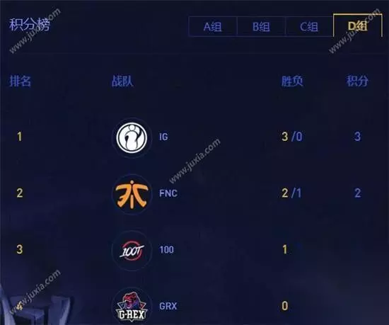 1、FNC对战100T(比赛时间:16:00) 2、GRX对战IG(比赛时间:17:00) 3、FNC对战TGRX(比赛时间:18:00) 4、100T对战IG(比赛时间:19:00) 5、GRX对战100T(比赛时间:20:00) 6、IG对战FNC(比赛时间:21:00) 【英雄联盟S8总决赛最新积分情况】