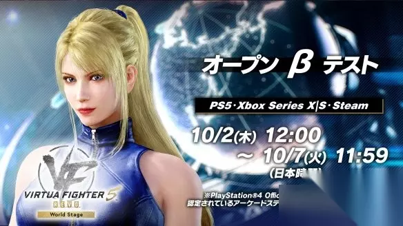 开放β测试的参与方法: 请通过各平台的《Virtua Fighter 5 R.E.V.O.》商店页面中的开放β测试参与按钮进行参与。 此次公开测试无需加入各平台的在线服务,也无需注册“Sega Account”即可参与。 公开测试期间,预计将支持作为PlayStation 4官方授权产品认证的街机摇杆型手柄。