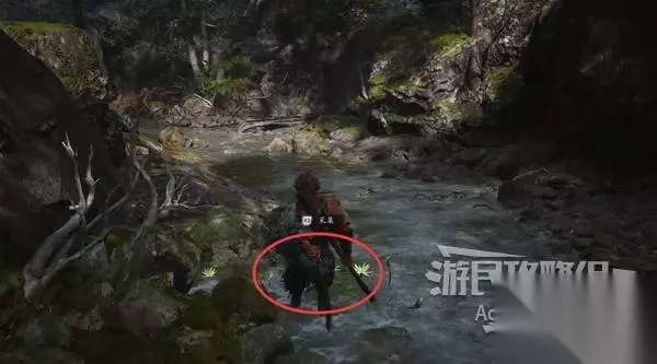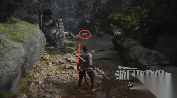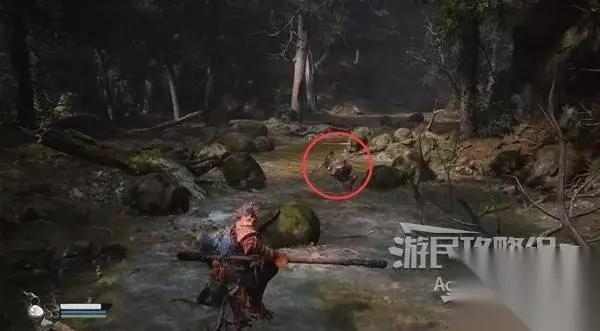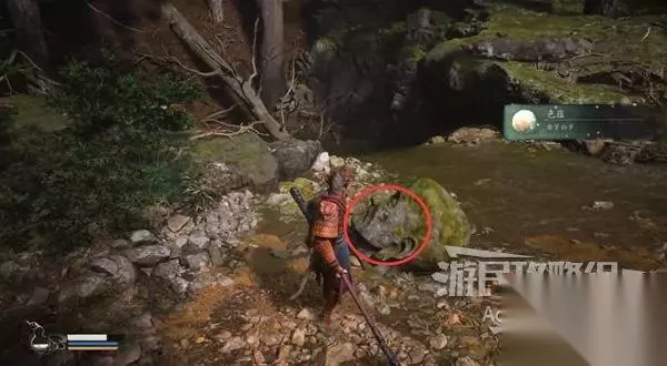 在河流的尽头,看到个鬼鬼祟祟的家伙。待它走后,过去调查佛头,得到【色蕴】。 然后去河流右侧打头目“牯护院”。