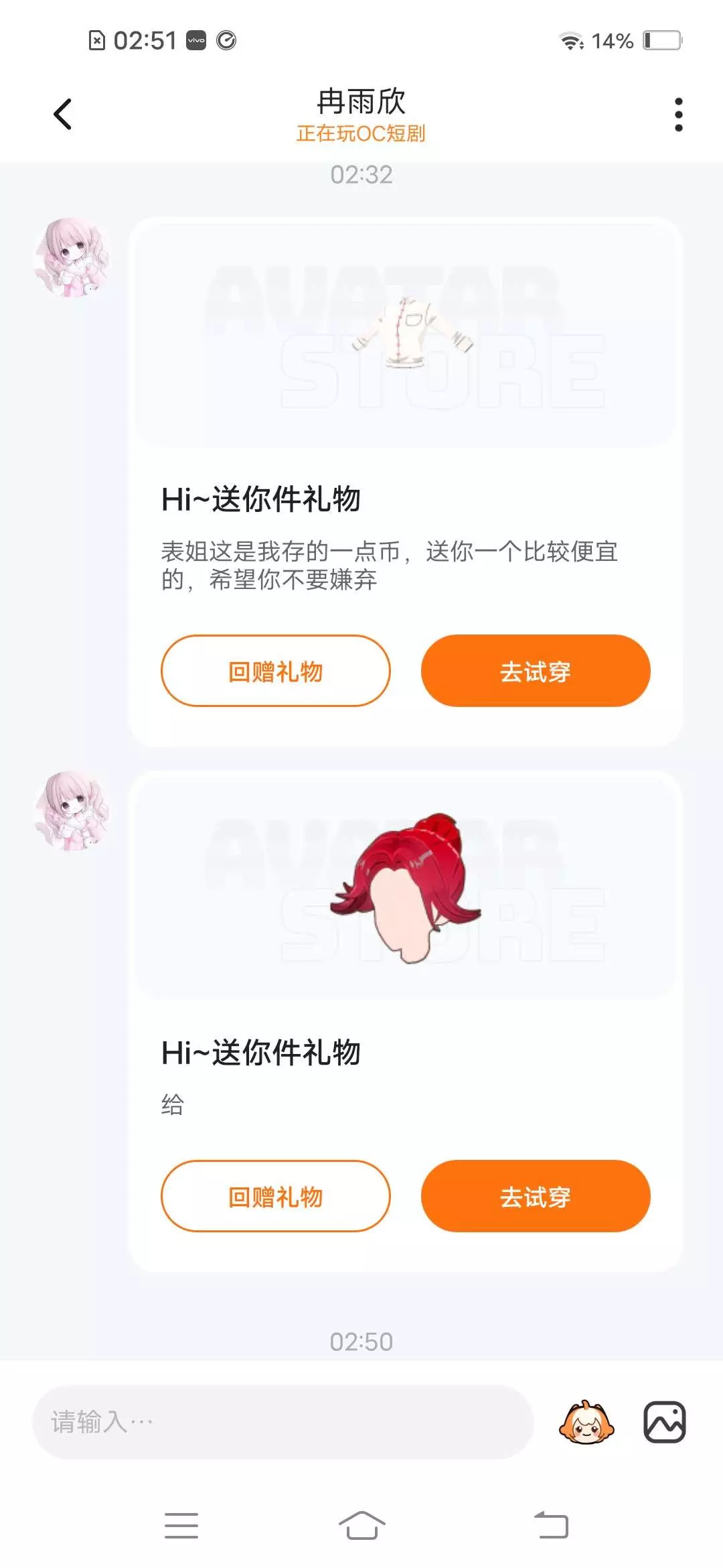 谢谢表妹的礼物。
