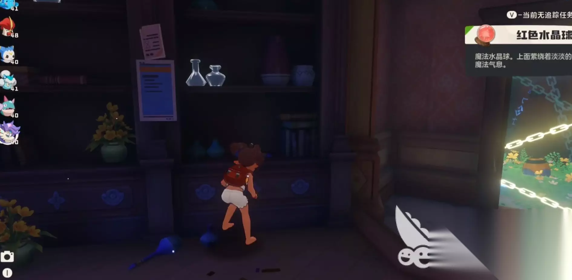 找到这六颗水晶球之后就可以前往秘境之内完成任务了。不过提交任务时要按照需要分阶段来交出指定颜色的水晶球。第一个房间对应的是黄色水晶球,大家可以直接在房间柜子上获取。第二个房间是紫色和绿色的水晶球,如果没有相应颜色的水晶球,可以通过秘境里的炼金壶合成,比如红色和蓝色可以合成紫色,黄色和蓝色则可以合成绿色。这里建议大家可以优先将秘境里的三原色水晶球全部收集完成之后再合成,避免资源浪费。