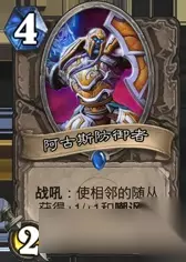 我把阿古斯也分在了污手体系中,并统称为buff体系。事实上,满编了风驰电掣和污手街供货商显得有些贪,而它们最大的缺点则是亏牌,所幸是神恩术和三教九流能弥补这个缺点。至于亏节奏,相信我,只要能buff到2个以上的怪,节奏很快就会抢回来的。 阿古斯则能增加卡组的爆发力,玩过动物园的都知道它的重要性,铺场卡组太需要阿古斯了,应对天梯中茫茫多的快攻,这是一张能反败为胜的卡。