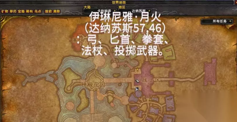 三、达纳苏斯 位置坐标为(57,46),可以学弓、匕首、拳套、法杖、投掷武器。