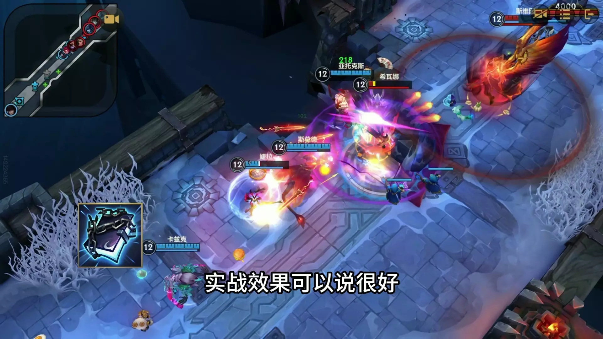 实战中希瓦娜在开团时千万不要先手,除非能大到敌方三个以上的英雄,因为希瓦娜先手的话大招会飞得很远,队友如果跟不上就很难起到作用,她最好是打后手,等敌方英雄站位比较集中时再开大飞进去,这样在打乱敌方阵型同时还能保护我方后排。如果我方有石头人和牛头这种硬辅,也能等他开团后再看情况用大招跟进,同时也能配合我方辅助保护后排输出,让敌方先开团,等敌方刺客打我方后排时,用大招起手来保护我方后排输出,从而击杀目标。